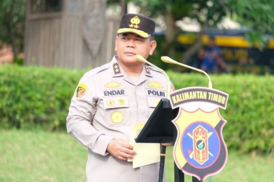 Kapolda Kalimantan Timur Irjen Pol. Endar Priantoro, memimpin apel pagi yang berlangsung di halaman Mako Polda Kaltim pada Kamis (4/9/2025)
