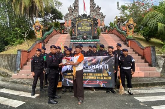 Dalam rangka memperingati Hari Ulang Tahun Pelopor ke-66, personel Batalyon A Pelopor Sat Brimob Polda Kaltim melaksanakan kegiatan karya