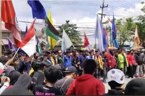 Ribuan massa dari Aliansi Mahakam menggelar aksi demonstrasi di depan Gedung DPRD Kaltim, Senin (1/9/2025). Peserta aksi terdiri dari