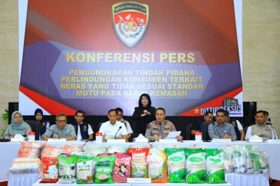 Swaramediakaltim.com – Kepolisian Republik Indonesia melalui Satgas Pangan Polri menggelar konferensi pers terkait pengungkapan kasus penjualan beras bermerek yang tidak sesuai dengan standar mutu. Acara ini dibuka oleh Karopenmas Divhumas Polri Brigjen Pol Trunoyudo Wisnu Andiko dan dipimpin langsung oleh Direktur Tindak Pidana Ekonomi dan Khusus (Dirtipideksus) Bareskrim Polri, Brigjen Pol Helfi Assegaf, selaku Kepala Satgas Pangan Polri. Dalam…