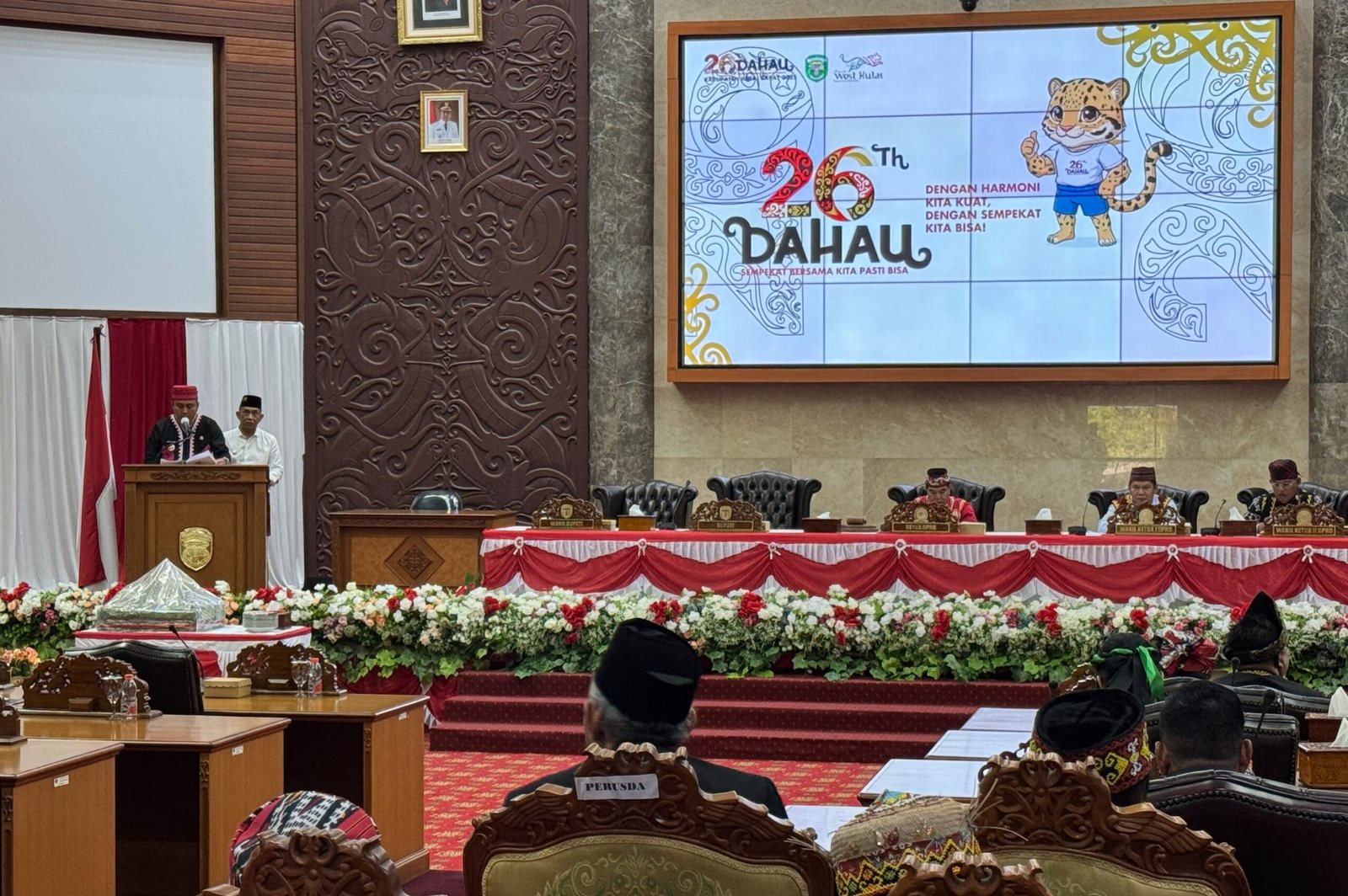 Pada kesempatan itu Bupati Edwin didampingi Wakil Bupati H Nanang Adrini, mengucapkan selamat HUT ke-26 Dahau 2025. Untuk itu iya menekankan pentingnya semangat kebersamaan, gotong royong, dan rasa syukur sebagai jiwa dari tradisi Harmoni Kebersamaan dalam Budaya.