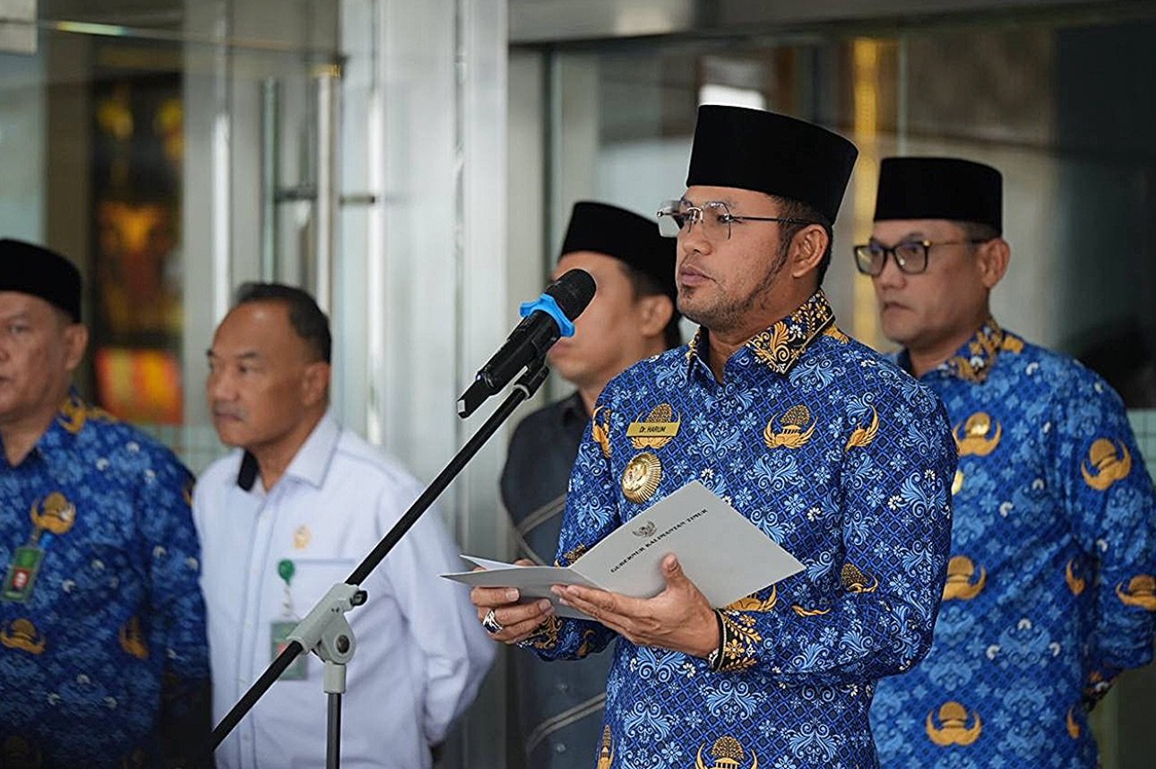 SwaraMediaKaltim.com – Mengenakan atribut Korps Pegawai Republik Indonesia, Gubernur Kalimantan Timur Dr H Rudy Mas’ud (Harum) bertindak selaku Pembina Upacara Peringatan Hari Ulang Tahun ke-54 Korps Pegawai Republik Indonesia (Korpri) Tahun 2025 di Teras Kantor Gubernur Kaltim, Senin 1 Desember 2025.