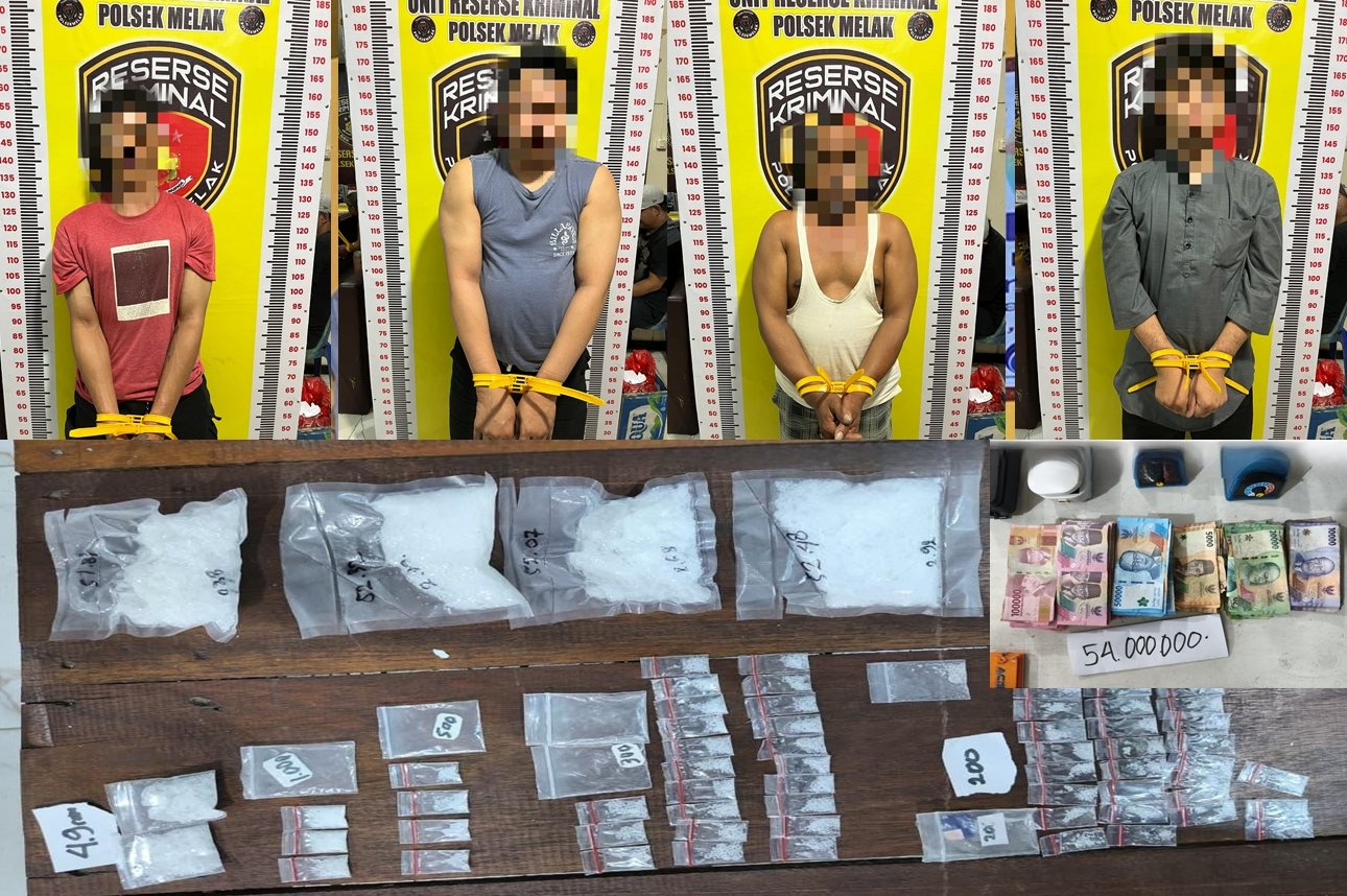 “Pada saat tim Polsek Melak sedang melakukan penggeledahan, datang seseorang berinisial AS yang hendak membeli narkotika jenis sabu-sabu kepada saudara IS. Kelima orang ini beserta barang bukti yang ditemukan di TKP langsung dibawa ke Mapolsek Melak untuk dilakukan pemeriksaan dan tindakan lebih lanjut,” tegas IPTU Rinto.