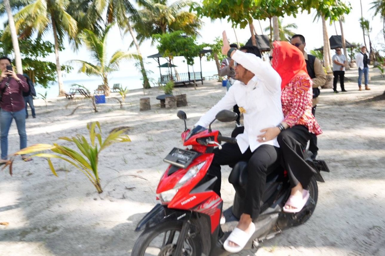 Beranda » Pakai Sepeda Motor, Gubernur Harum Tinjau Proyek Penahan Abrasi Pantai Biduk-Biduk