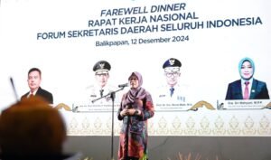Swaramediakaltim.com – Usai berkegiatan di Ibu Kota Nusantara (IKN) Sepaku Kabupaten Penajam Paser Utara (PPU), peserta Rapat Kerja Nasional (Rakernas) Forum Sekretaris Daerah Seluruh Indonesia (Forsesdasi) Tahun 2024 menghadiri jamuan makan malam di Kampung Pasir Klandasan Balikpapan, Kamis 12 Desember 2024. Jamuan makan malam sekaligus penutupan Rakernas Forsesdasi 2024, dihadiri Sekretaris Daerah Provinsi Kaltim Sri…