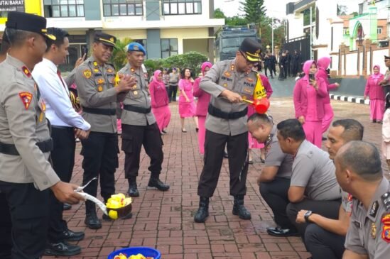 Kapolres Kutai Barat (Kubar), AKBP Boney Wahyu Wicaksono, memimpin upacara Korp Raport Kenaikan Pangkat Perwira Pertama (Pama) dan Bintara Polres Kubar