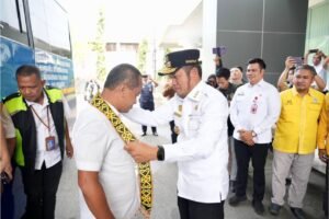 Caption: Gubernur Harum ketika menerima Menteri ESDM RI Swaramediakaltim.com – Gubernur Kaltim Dr H Rudy Mas’ud (Harum) bersama istri yang juga Ketua TP PKK Kaltim Hj Sarifah Suraidah (Bunda Harum) menerima kunjungan kerja (kunker) Menteri ESDM RI Bahlil Lahadalia, di VVIP Room Bandara Internasional Sultan Aji Muhammad Sulaiman Sepinggan Balikpapan, Rabu 30 April 2025. Mengenakan…