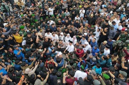 Suasana unjuk rasa ribuan massa di depan Kantor DPRD Provinsi Lampung berlangsung berbeda ketika Gubernur Lampung Rahmat Mirzani Djausal