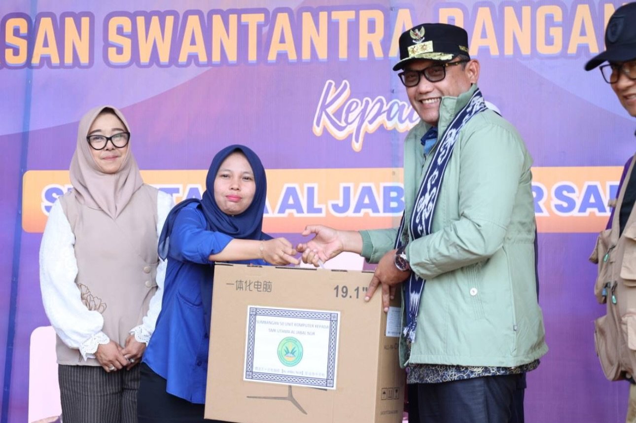 Ketua Yayasan Swatantra Mandiri Nusantara Marsekal Madya TNI Purn Daryatmo menyebutkan bantuan yang diserahkan berupa 50 unit komputer dan domba.